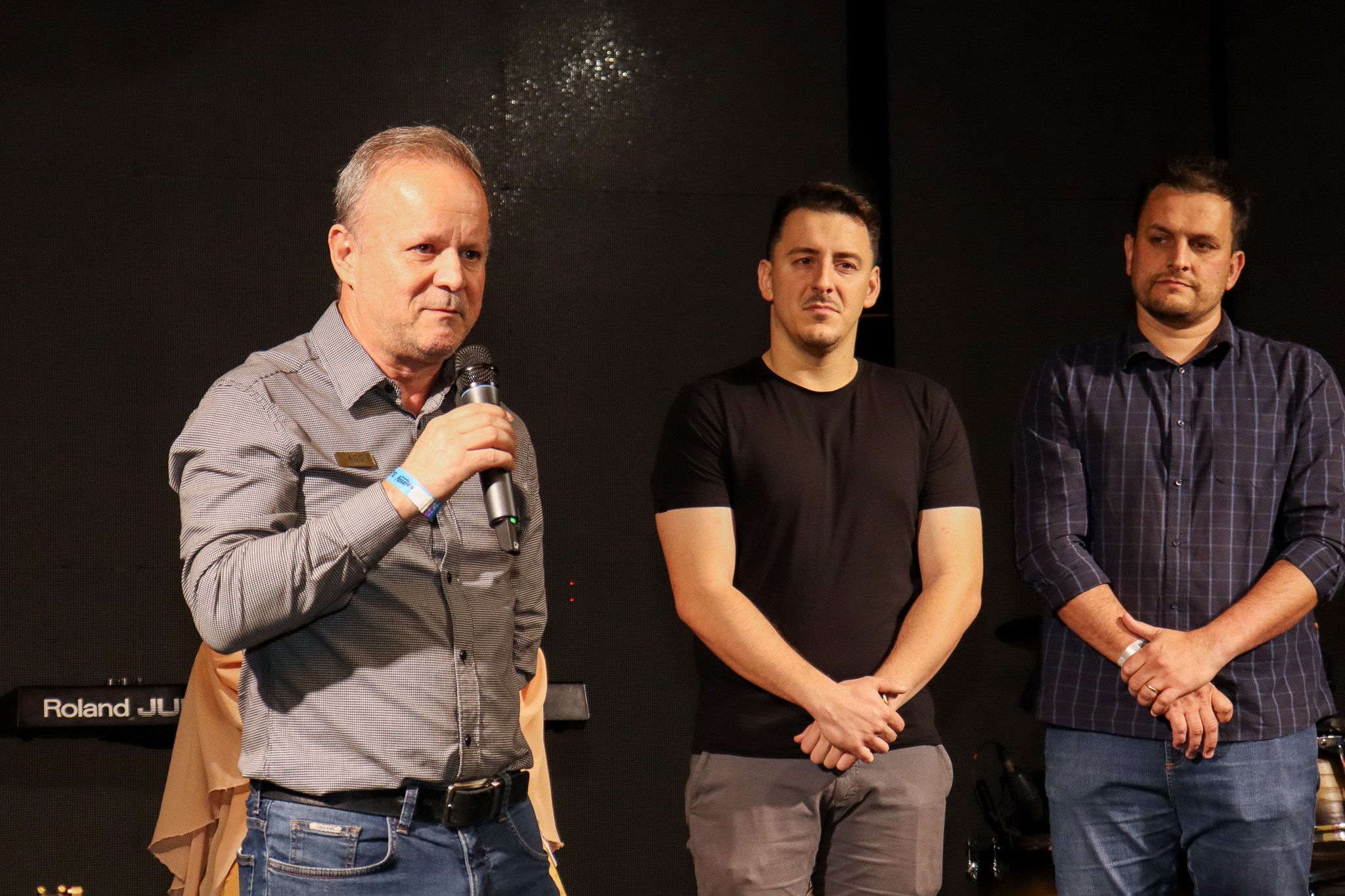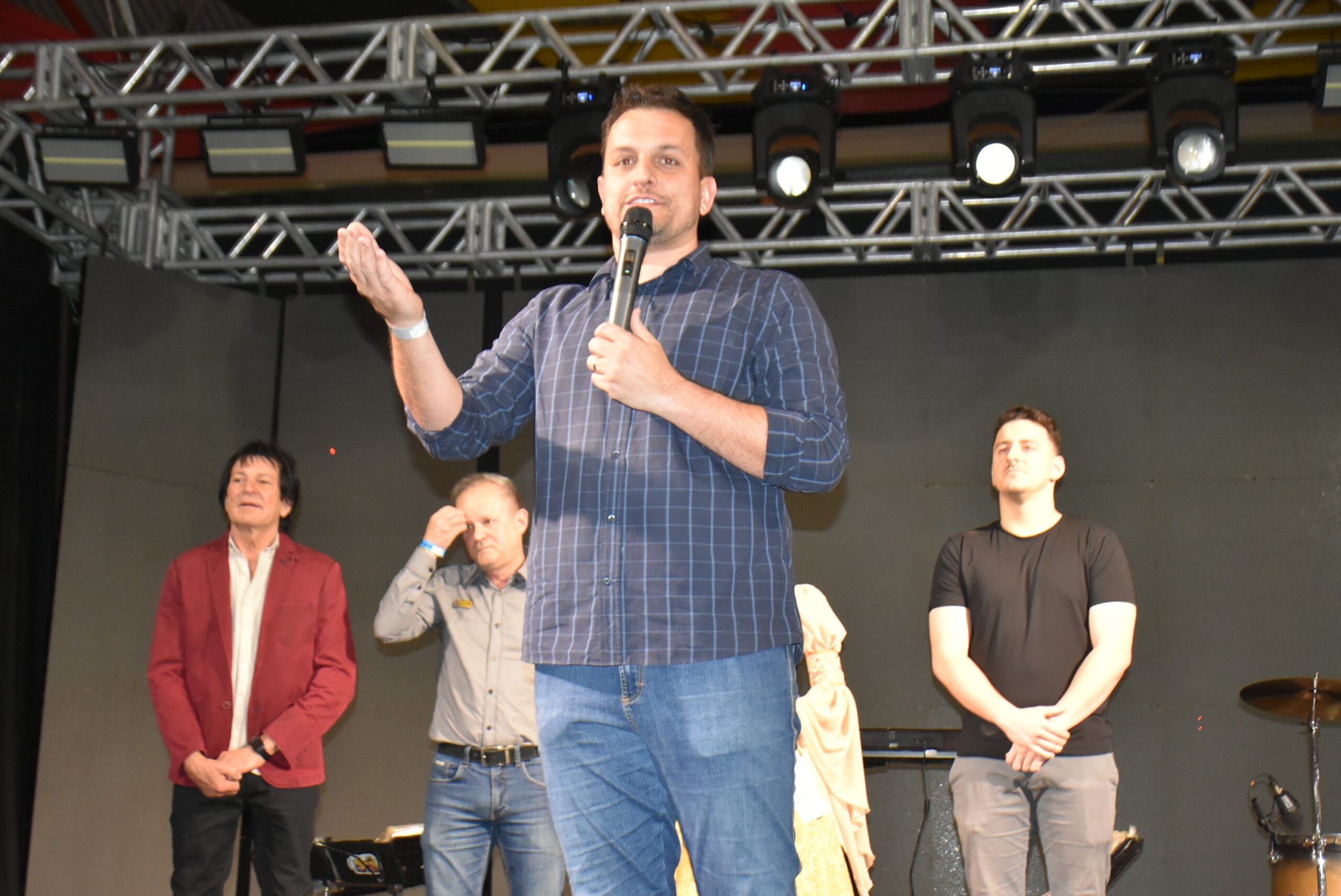 Em seguida, o presidente da ACCIE, anfitrião da noite, ressaltou o orgulho da entidade em sediar um evento de grande porte, gratuito e voltado à comunidade. Agradeceu o apoio da Prefeitura, da imprensa, das forças de segurança e da equipe interna da ACCIE, além de destacar o empenho da empresa Barba Eventos, produtora da programação artística. “É uma honra realizar uma festa dessa magnitude, que leva alegria ao nosso povo trabalhador e oferece momentos de convivência e lazer”, afirmou o presidente.